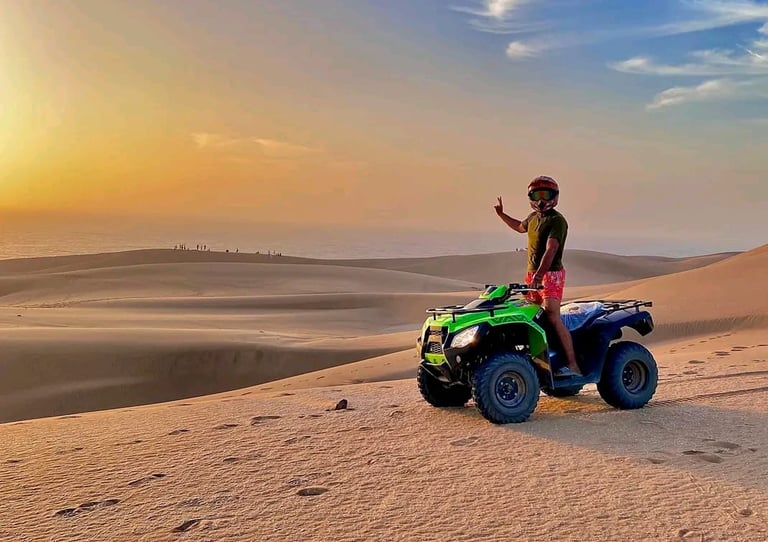 Choose your adventure: glide down the golden dunes with sandboarding, ride across the desert on a powerful quad, or select our combo package for the ultimate desert experience.